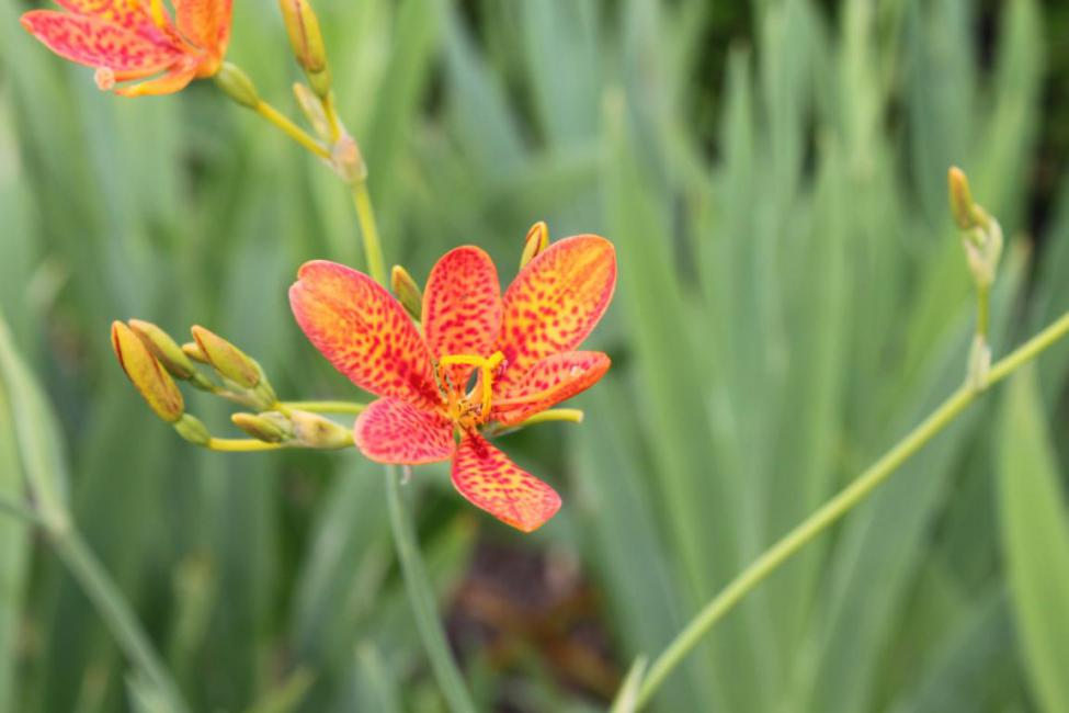射干为鸢尾科多年生草本植物,别名蝴蝶花、凤翼等,花形飘逸,美丽又妖娆,橘红色的花瓣上还有许多星星点点的斑点,极具观赏价值,也可作绿化植物。入药部位为其块状根茎,主产于湖北、河南等地,春秋二季采挖,洗净,去须根,晒干,切片生用,是临床常用的清热解毒药,具有清热解毒、祛痰、利咽的功效。历代本草都记载射干,为治疗喉痹咽痛的要药,也是现代治疗肺系疾病,尤其是治疗痰证的要药,且近几年来国内外对射干的研究及临床应用也越来越多。