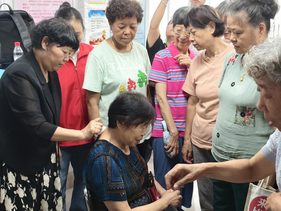 “用热热的鸡蛋配上银制品在肌肤上滚动,是苗族流传千年的滚蛋疗法。”贵州省凯里市中医(苗医)医院苗医科主任王燕在“苗侗医药文化发展”讲座上,从苗侗文化讲到苗侗医药,并系统介绍苗侗医外治法的精髓,涉及疼痛疗法、痛风治疗、苗罐疗法、火酒疗法、拓灸疗法、滚蛋疗法和瑶浴疗法等,深入浅出的讲解让现场居民频频点头。互动环节时,居民们排队体验滚蛋疗法。一位阿姨体验后惊喜地说:“鸡蛋在肩颈滚过之后,酸痛感明显减轻了。”