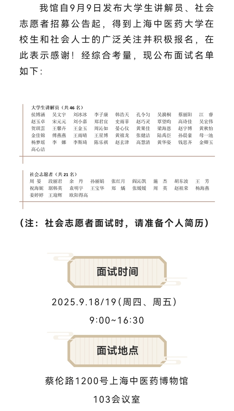 【公告】2025年我馆大学生讲解员、社会志愿者培训名单