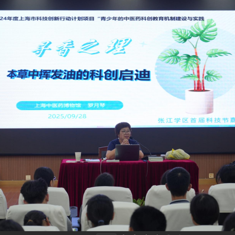 2025年9月28日下午,张江学区首届科技节嘉年华暨新优质项目展示活动在华东师范大学张江实验中学举办。活动充分体现了“科技为本、三区联动、课程超市”的学区办学理念,由张江学区治理委员会主办,我馆参与协办。馆长李赣率中医药科创种子教师团队参与活动。