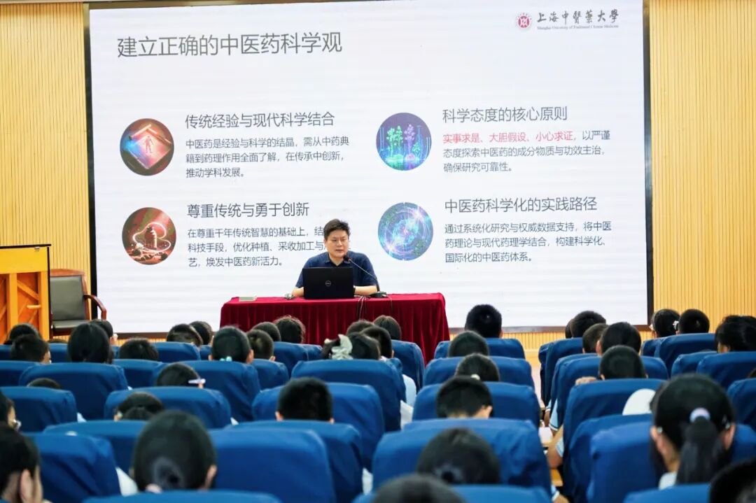 上海中医药大学附属龙华医院的黄景山老师以“三花探秘:从古籍到实验室的中药科创之旅”为题,为学生们铺开了一幅传统中医药与现代科学交融的生动画卷。他以《本草纲目》等古籍记载开篇,娓娓道来“三花”悠久的历史与应用,不仅介绍金银花的抗菌之效、金蝉花的奇妙来源与镇静之功,还揭示枸杞子增强免疫的现代科学原理。他还通过生动的图片和案例,展示了科研人员如何运用高科技手段,提取“三花”中的有效成分,并通过严谨的实验来验证其药效,将古老的经验转化为确凿的科学数据。