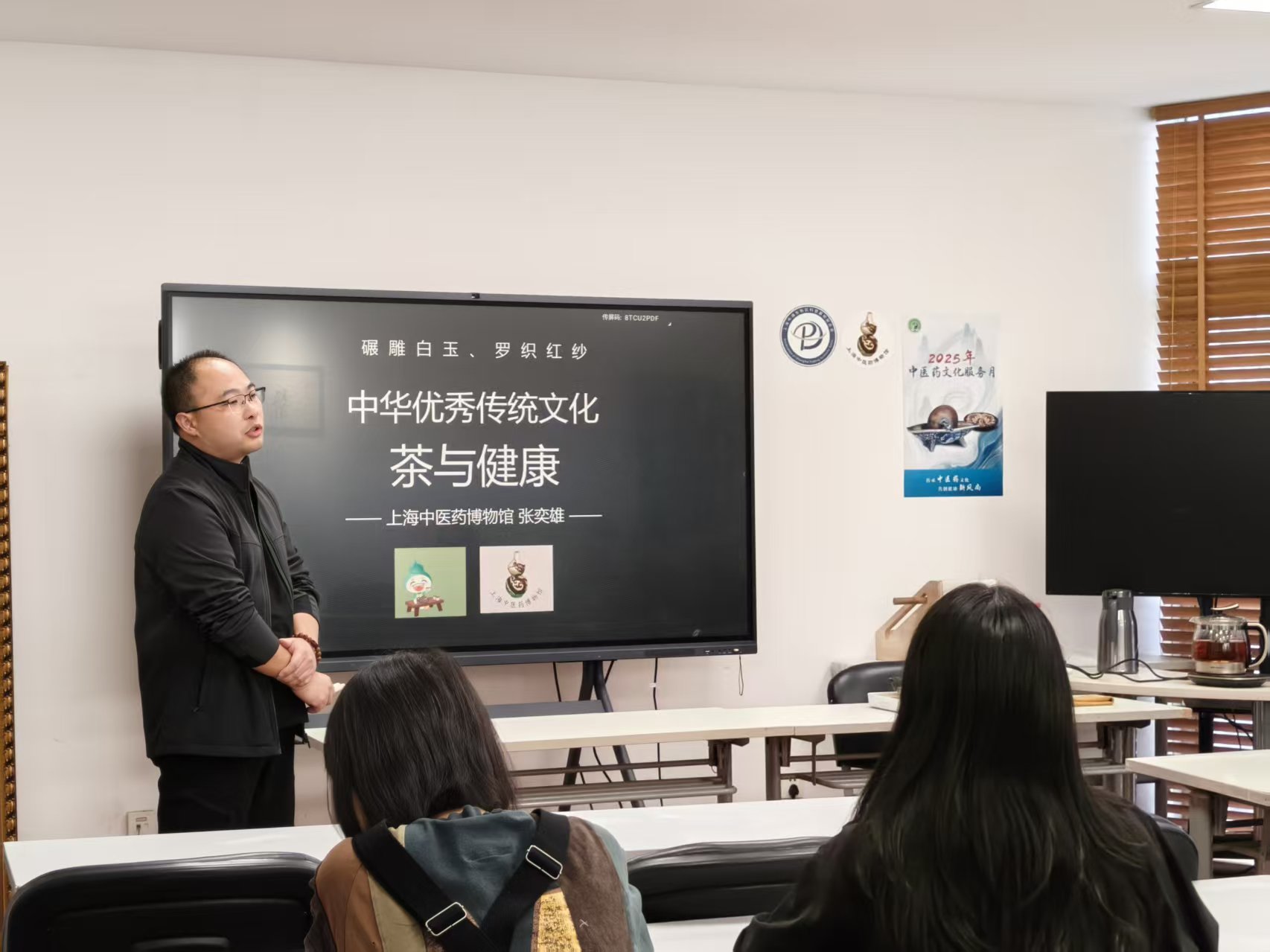 活动中,上海中医药博物馆张奕雄老师穿插了“中华优秀传统文化——茶与健康“的简单介绍,从中医视角解读茶的性味归经与养生功效,分享不同体质人群的饮茶宜忌。”陈皮深普“、”杞菊红茶“——温热的茶汤被逐一奉上,观众们手持茶盏细细品茗,在袅袅茶香中交流心得、放松身心,墨香余韵与茶香回甘交织,使得深奥的经典条文也变得有滋有味。