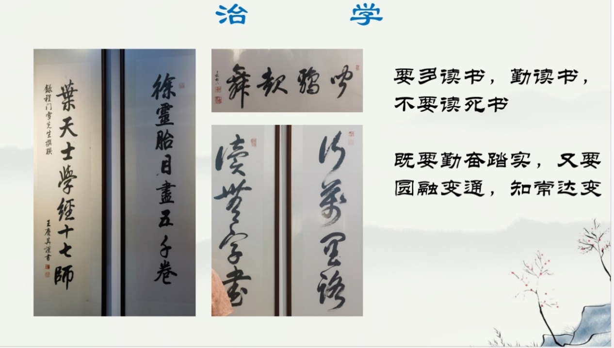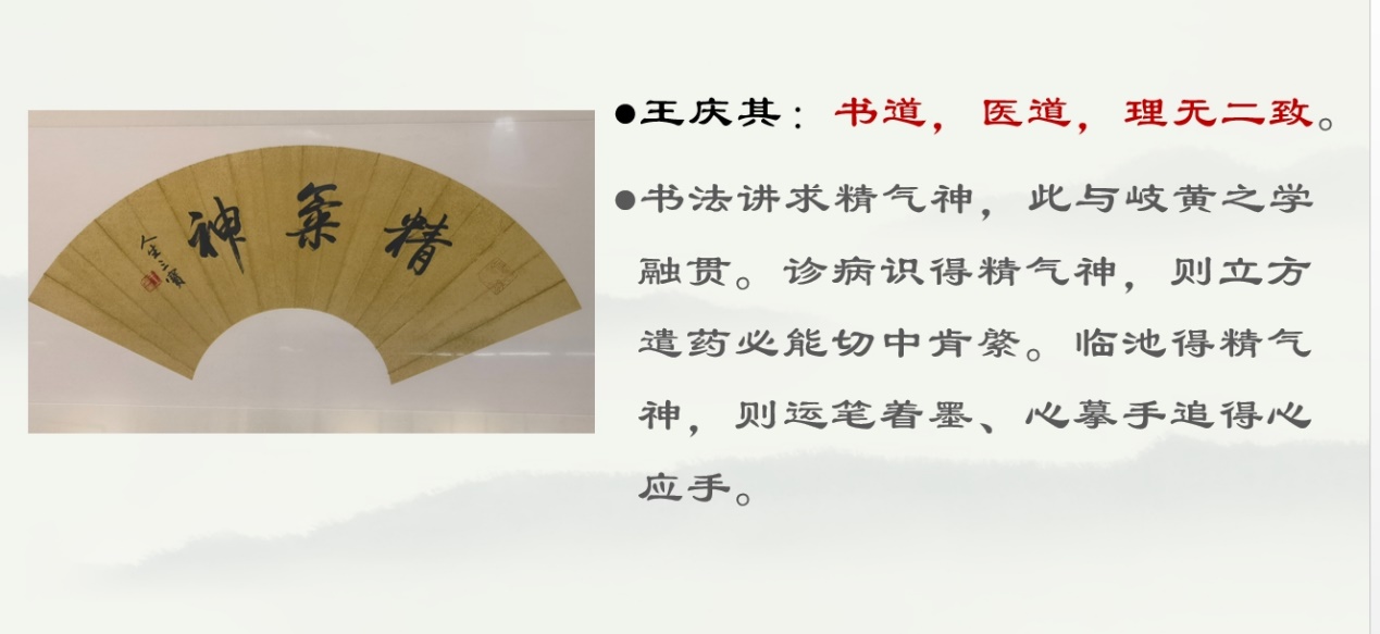 活动伊始,由上海市名中医、上海中医药大学终身教授王庆其教授的亲传弟子——中医学院内经教研室王丽慧老师带领,为观众讲述书法作品创作者王庆其教授为人、为学、为师的成长历程经验,并结合其书法作品,既解读了笔墨间的文人风骨,更深挖其中蕴含的中医哲理:“书道,医道,理无二致”,让观众在欣赏书法艺术之美的同时,间接领悟中医 “天人合一” 的核心思想。
